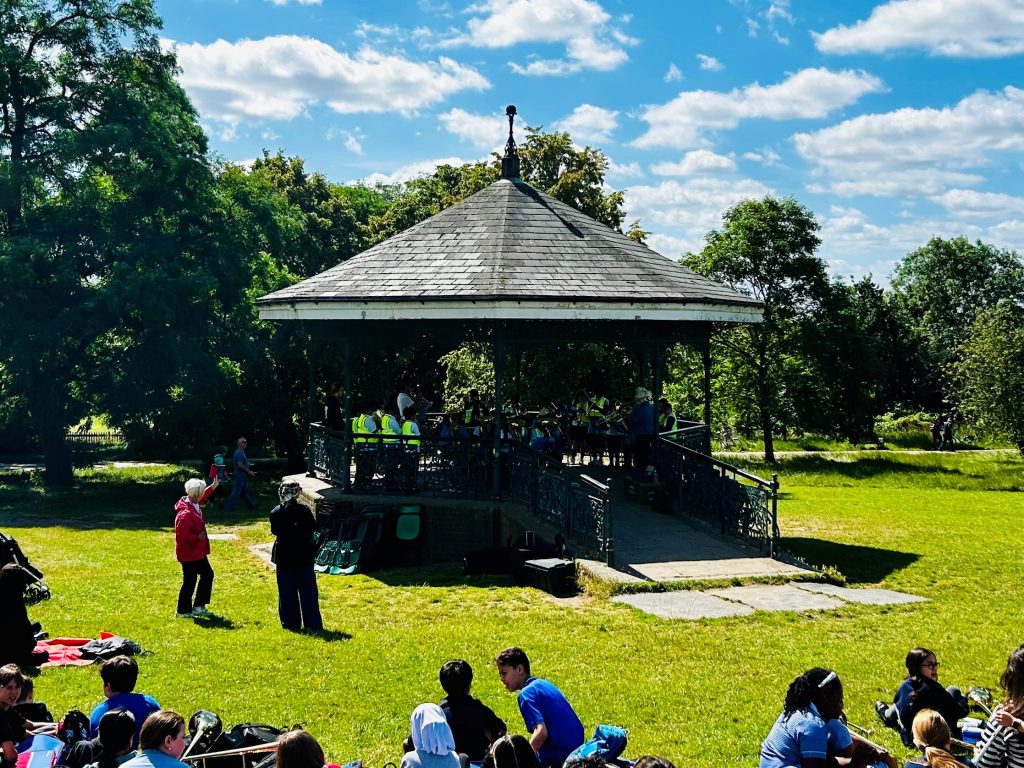 Over two days in July, we had fantastic brass performances on the Bandstand at Parliament Hill and in Gospel Oak’s School hall (due to rain), showcasing the range of high-quality brass playing that is taking place across our borough. With over 300 performers from schools and borough brass groups, the audience was treated to two days of exciting performances.